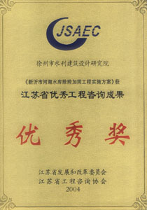 《睢北河工程可研報(bào)告》咨詢優(yōu)秀獎(jiǎng)(2003)