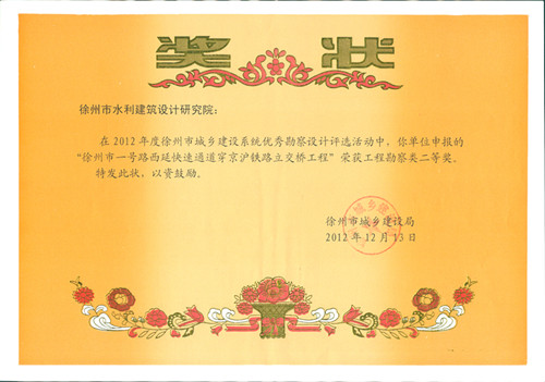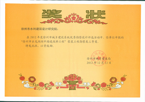 “徐州市云龍湖湖中路堤改橋工程”榮獲工程勘察類三等獎(jiǎng)