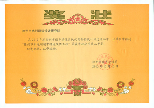 “徐州市云龍湖堤改橋工程”榮獲市政公用類二等獎(jiǎng)