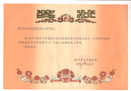 《新城區(qū)防汛抗旱指揮中心》市建設(shè)系統(tǒng)優(yōu)秀工程勘察三等